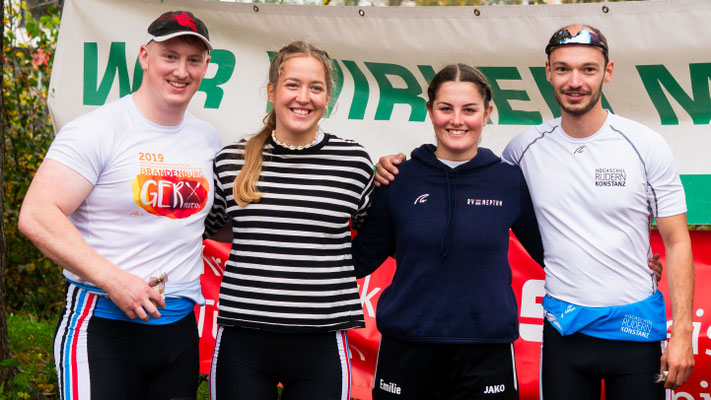 Daraufhin folgte die erste Siegerehrung des Tages. Für kulinarische Verpflegung an der Rennstrecke hatte der Gastgeber ausreichend gesorgt, sodass die Mittagspause schnell verflog und alle gestärkt in die zweite Tageshälfte starten konnten. Als nächstes folgte ein Rennen der Rennsport Doppelvierer, das Pascal Hagenlocher, Johannes Treviranus, Jonathan Fitzky und Lukas Schulth für Konstanz bestritten. Im Rennsport Mixed-Doppelvierer standen sich Zoe Würfel, Emilie Schaufler, Jonathan Fitzky und Pascal Hagenlocher sowie  Anna Baur, Elena Jäckle, Johannes Treviranus und Tobias Geisenberger gegenüber, wobei die Mannschaft um Zoe Würfel siegreich war. Im Breitensport Doppelzweier fuhren Leo Schweitzer und Emil Bredow zum vierten Sieg des Tages für Konstanz.