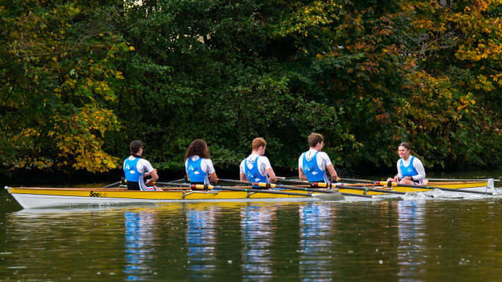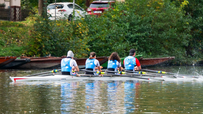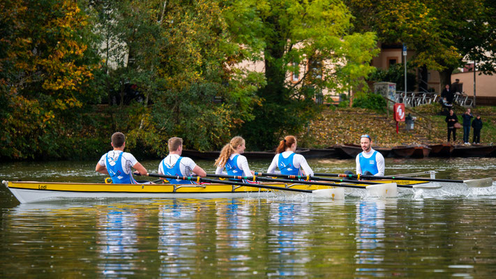 Am Samstag, 19. Oktober 2024 fuhren 24 Athletinnen und Athleten des RV Neptun Konstanz früh morgens los in Richtung Tübingen. Manche Autos nahmen dabei un-freiwillig einen kleinen Umweg durchs idyllische Tübinger Hinterland („Häh, ist das jetzt Tübingen?“), was der Ab-lenkung des Fahrers durch die Besatzung der Rückbank geschuldet war. Andere vertrieben sich die Fahrtzeit mit Diskussionen über die Überlegenheit von Siebträger-maschinen. An Bord waren neben Kaffeeexperten auch 5 Renn- und 2 Gigboote, die in insgesamt 16 Rennen der Herbstregatta des Tübinger Rudervereins Fidelia zum Einsatz kamen. Auf 350 Metern zwischen alter Neckar-brücke und Stauwehr galt es, sich gegen die Vereine aus Tübingen, Waiblingen und Radolfzell zu beweisen.